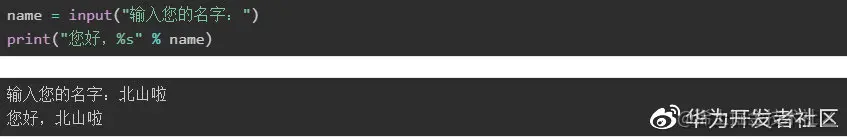 输入使用input(),它接收一个字符串作为显示给用户的提示信息,用户输入后,将会以字符串形式返回给程序。