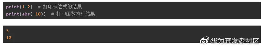 另外,print()中除了可以接收字符串参数外,也可以接收其他任何参数,还可以调用函数,将函数执行结果打印出来。还可以是一个表达式,将表达式的运行结果打印出来。