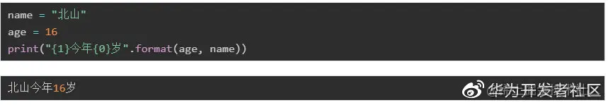 着这种方式下,使用{}作为占位符,但它的好处在于可以给它指定顺序,例如: