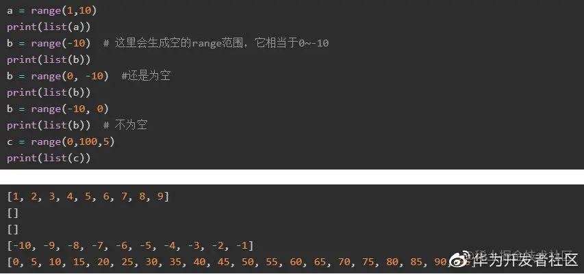 - “start < stop”,才能生成包含元素的range,如果stop< start,则为空。