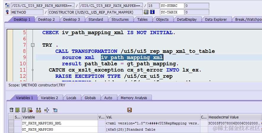 使用一个transformation ui5_rep_map_xml_to_table 将xml source转换成internal table: