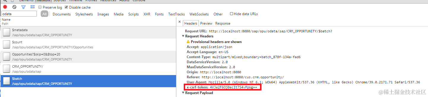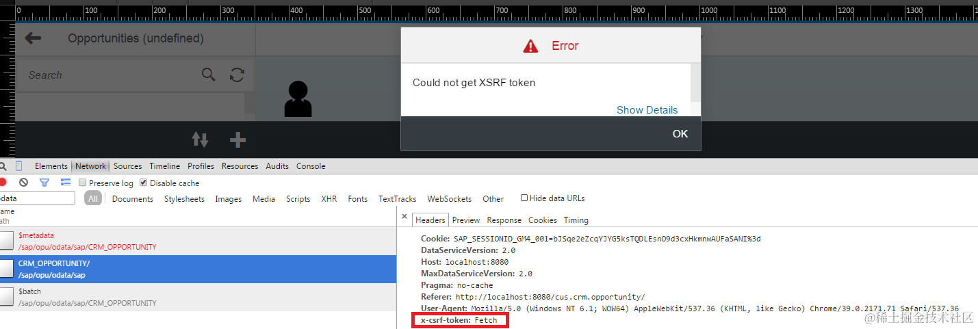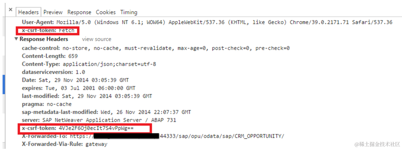 说明后台在返回csrf token时出了问题。正常的scenario下,command为Fetch的x-csrf-token http header会向后台发起一个token fetch的请求,token在http response中返回: