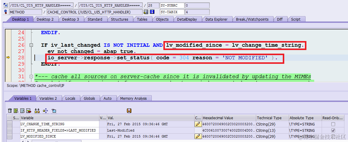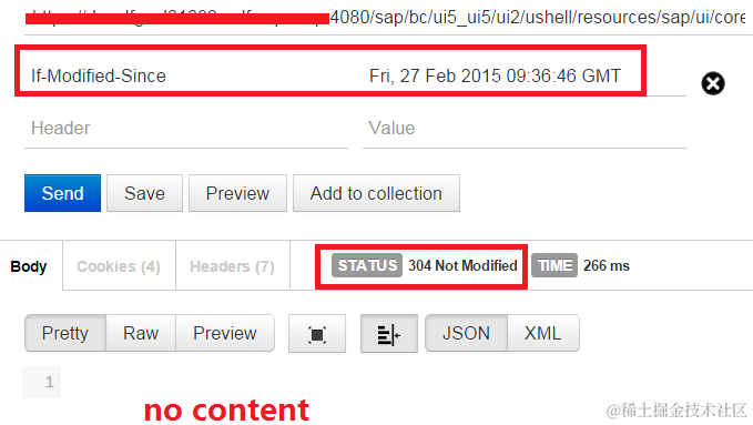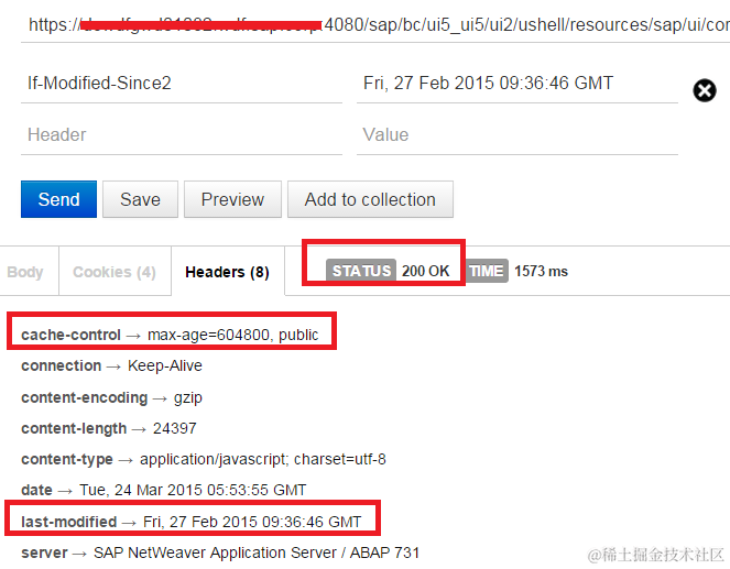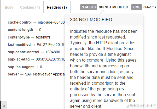 Where is ABAP Netweaver HTTP 304 not modified set 已注销 2021-04-25 68 阅读1分钟 Created by Jerry Wang, last modified on Mar 26, 2015 test1: test2: What does 304 Not Modified mean? last-modified value的设置: cache-control的设置位置: 304 code的设置位置: 要获取更多Jerry的原创文章,请关注公众号"汪子熙":