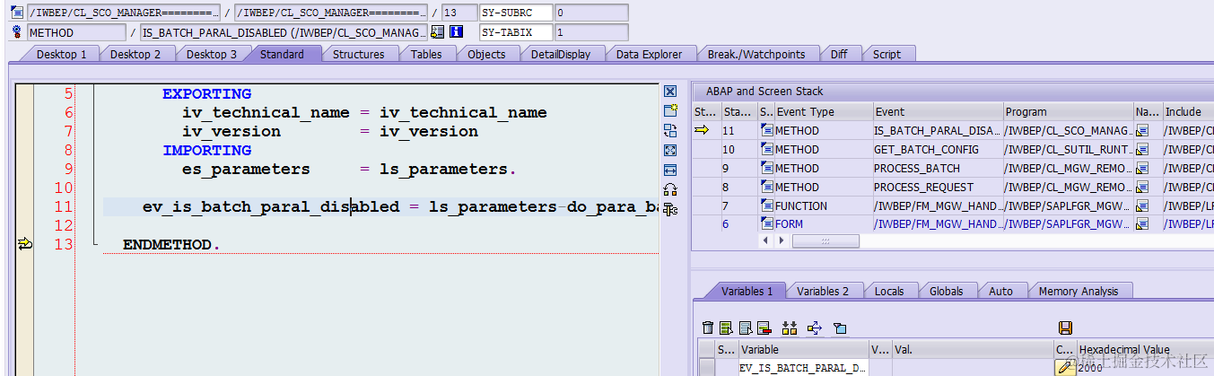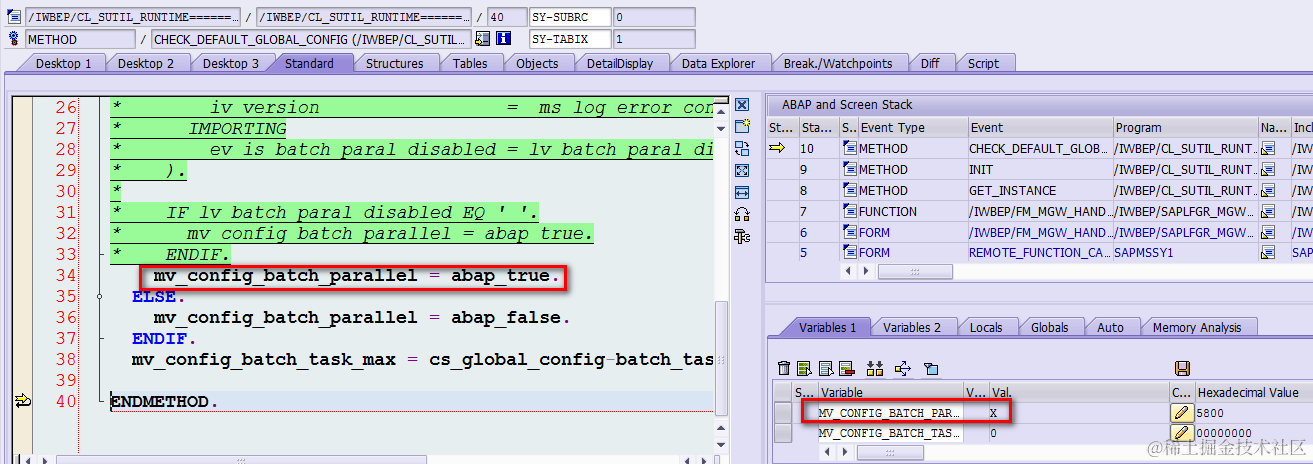 SAP OData batch request的并行处理实现原理 已注销 2021-04-25 158 阅读1分钟 Created by Jerry Wang, last modified on Oct 30, 2015 用下面这个方法检查全局设置: 检查batch 并行处理是否已经被disable: 默认情况下,batch进行parallel处理设置为true: 进入处理逻辑: 仅仅设置标志位: 获得当前系统available的work process number: 一共42个: 同步操作: 返回的结果: 要获取更多Jerry的原创文章,请关注公众号"汪子熙":