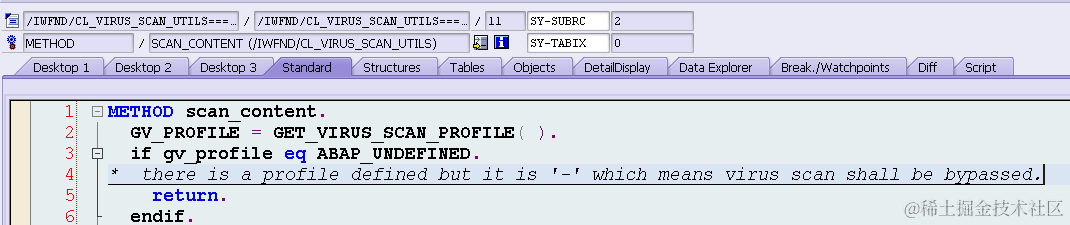 debug 能发现当前的virus scan profile name: