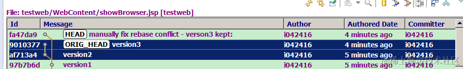 although 02cb4fc disappears from command line, it still exists in Eclipse Plugin.