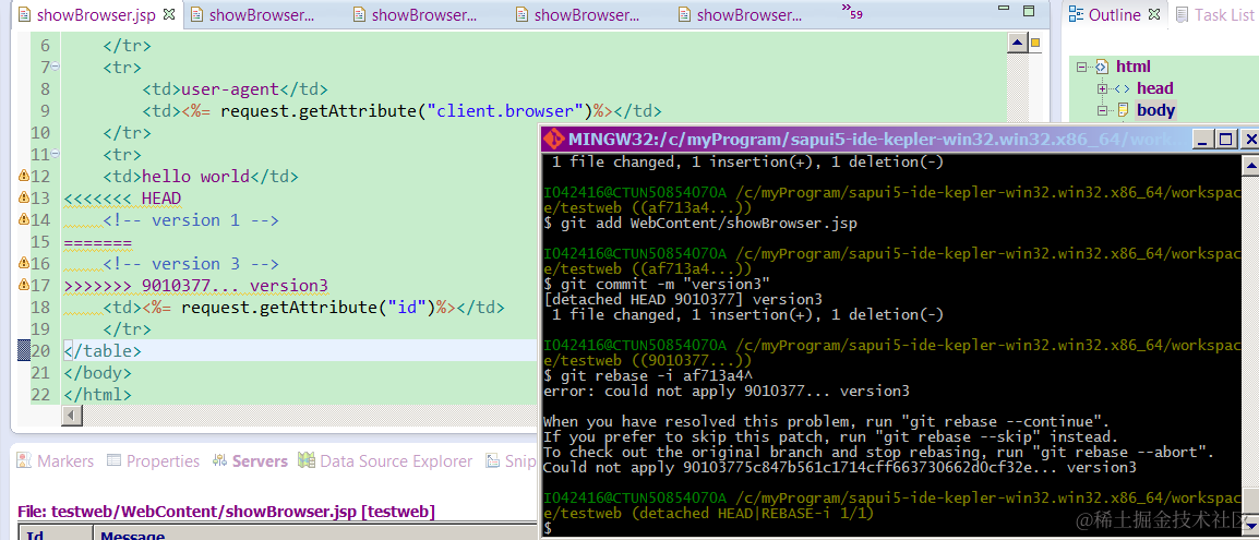 In order to also remove the local commit version from Eclipse plugin, we have to use rebase command.