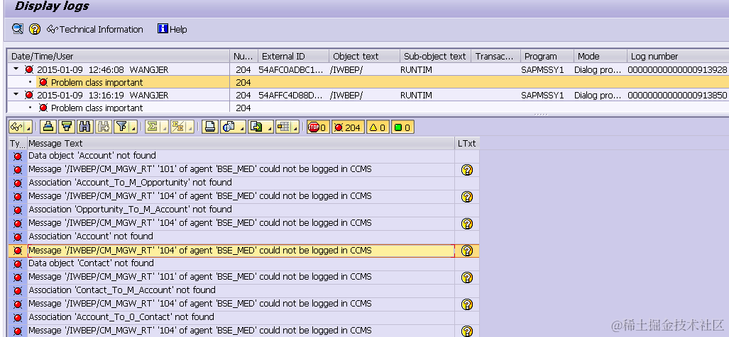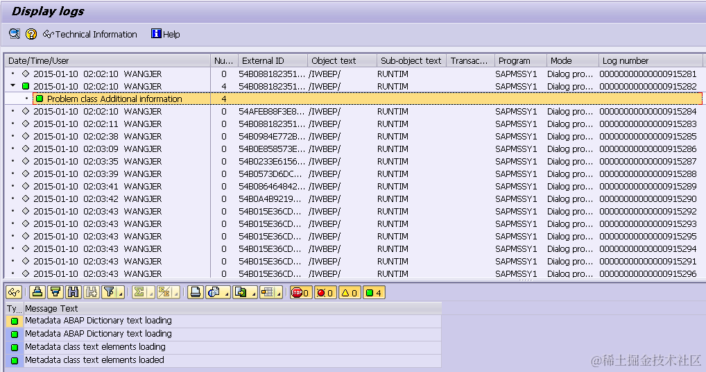 Trace SAP OData execution in CRM backend system 已注销 2021-04-25 67 阅读1分钟 Created by Jerry Wang, last modified on Jan 10, 2015 CRM backend 默认的trace level只是记录error 信息: SLG1 object: /IWBEP/ 如果想记录完整信息, SM30: 添加一条新的entry: 之后就能记录完整的trace 信息: 要获取更多Jerry的原创文章,请关注公众号"汪子熙":