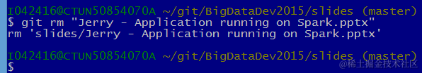 如何使用git rm 删除文件名里带空格的文件名 已注销 2021-04-25 158 阅读1分钟 Created by Jerry Wang, last modified on Sep 23, 2015 待删除的文件包含空格符: 使用""将文件名包含起来: 成功删除: 要获取更多Jerry的原创文章,请关注公众号"汪子熙":
