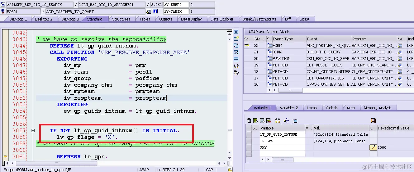 对于出现空Opportunity list的user而言,line 3045行的FM返回为空,因此lv_gp_flage始终未initial,从而使得DB query不会被执行。