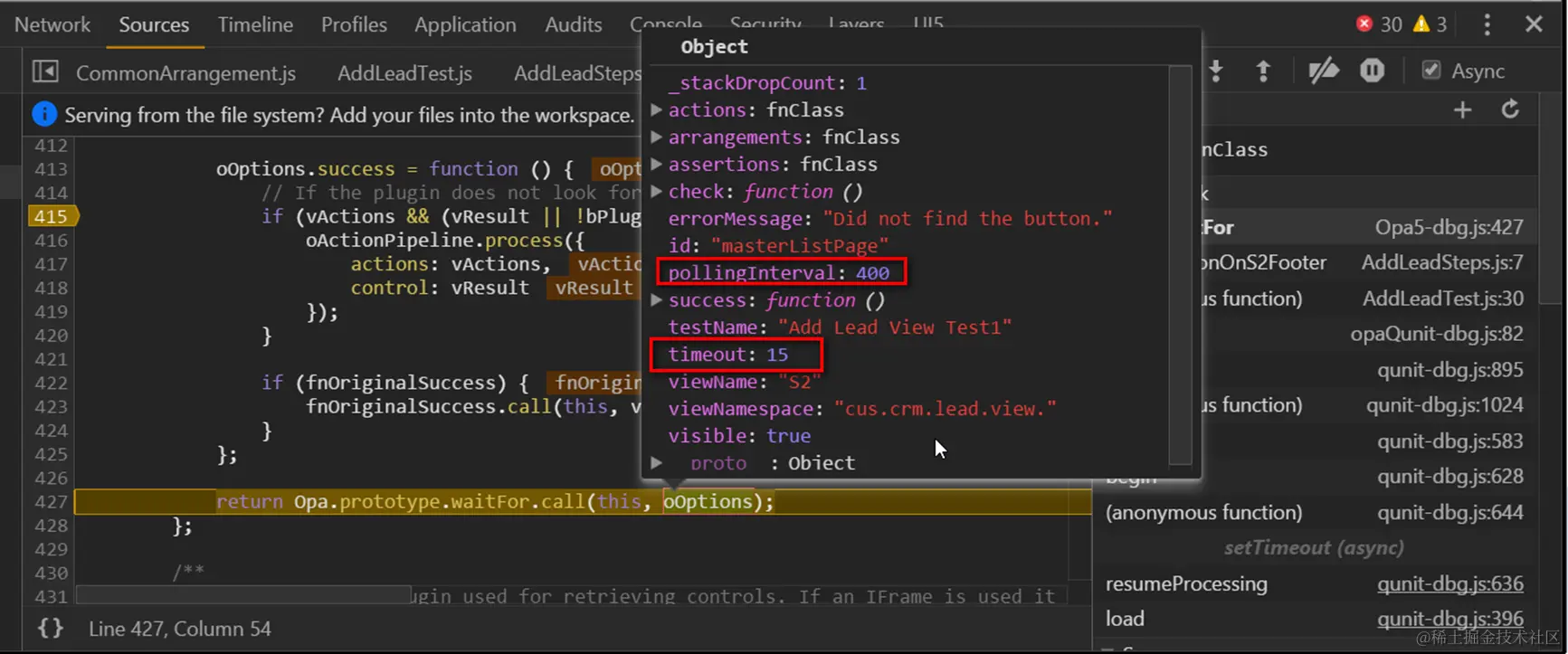 Wait for的超时时间是15秒,每隔400毫秒检查一次。