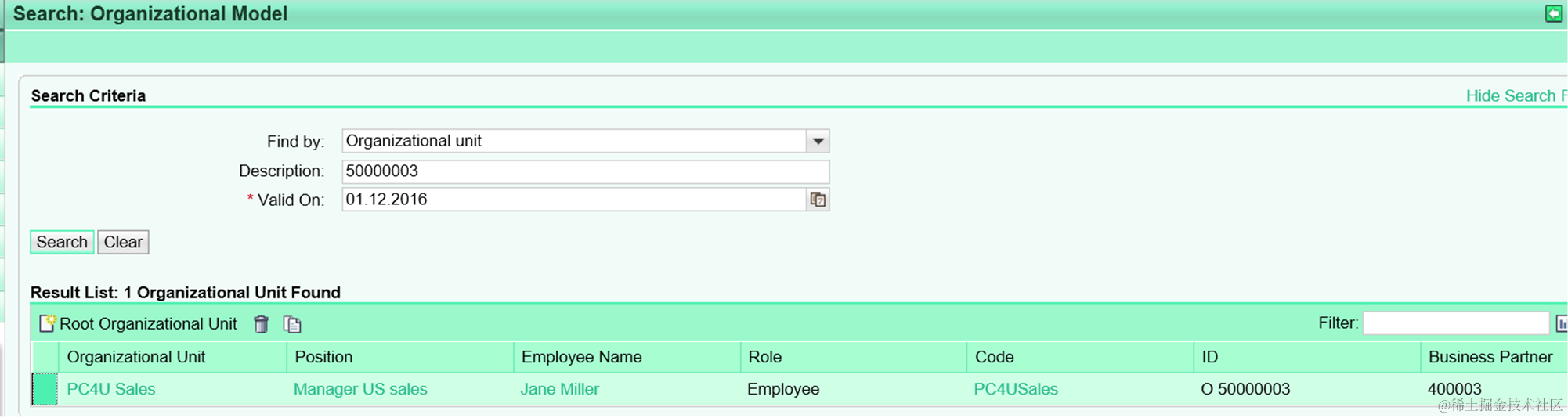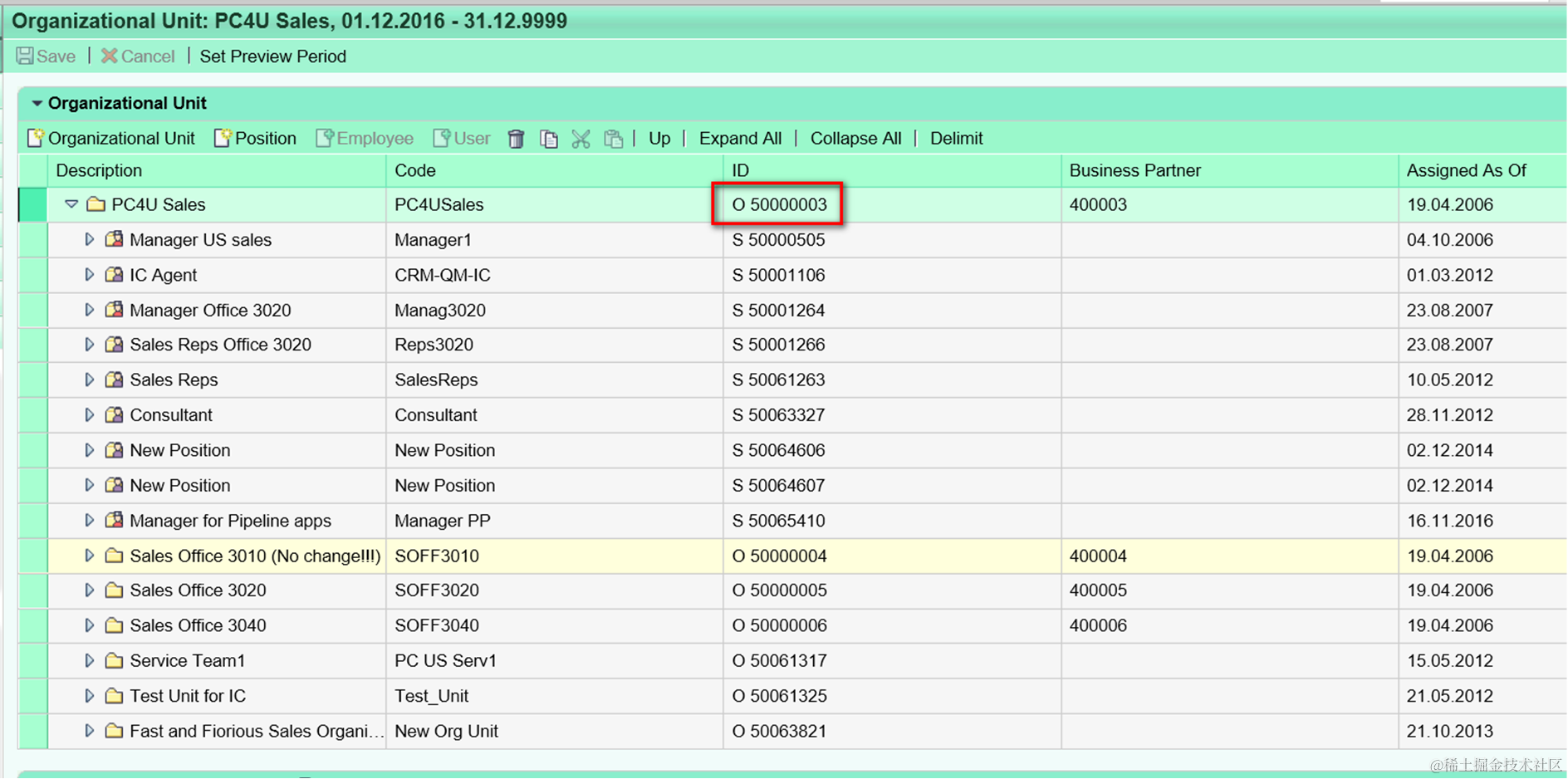 From result we knows CP 50064160 belongs to organization unit 50000003: