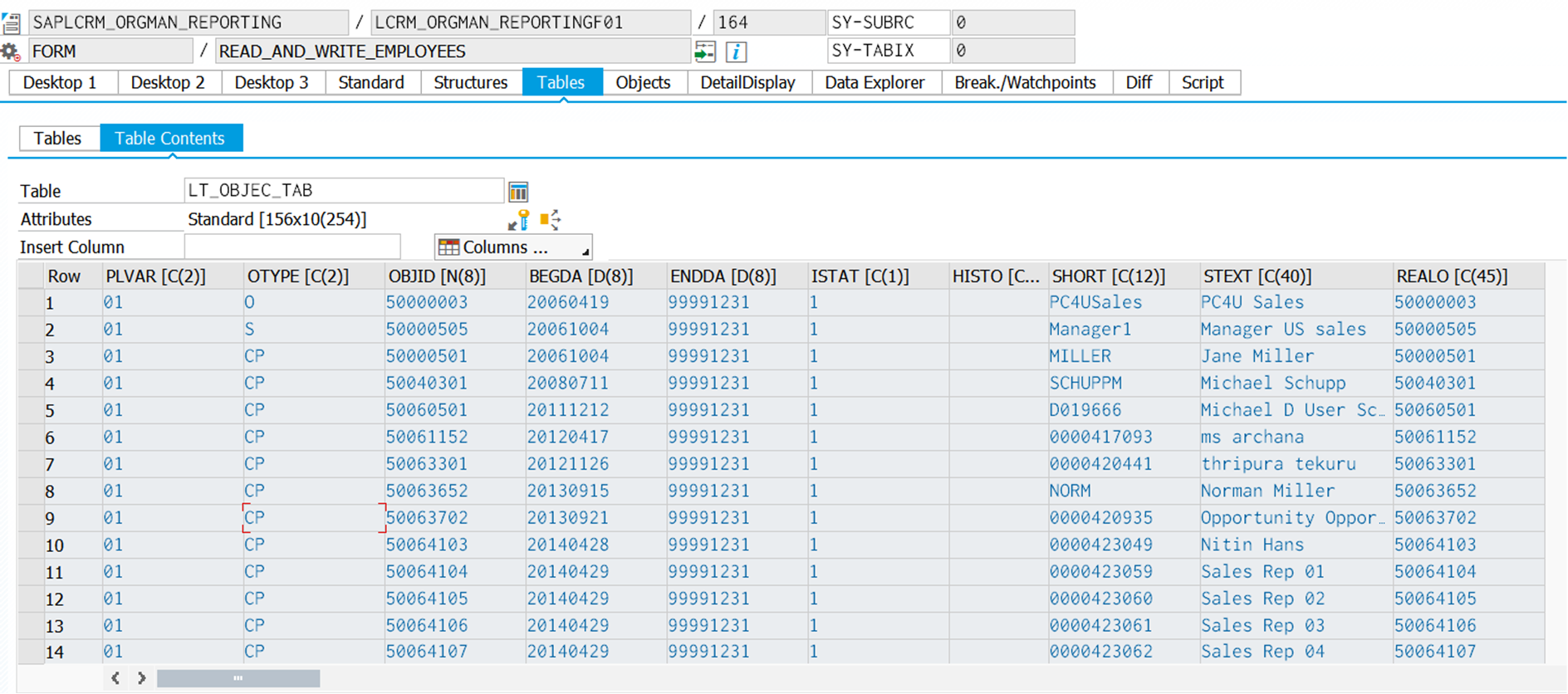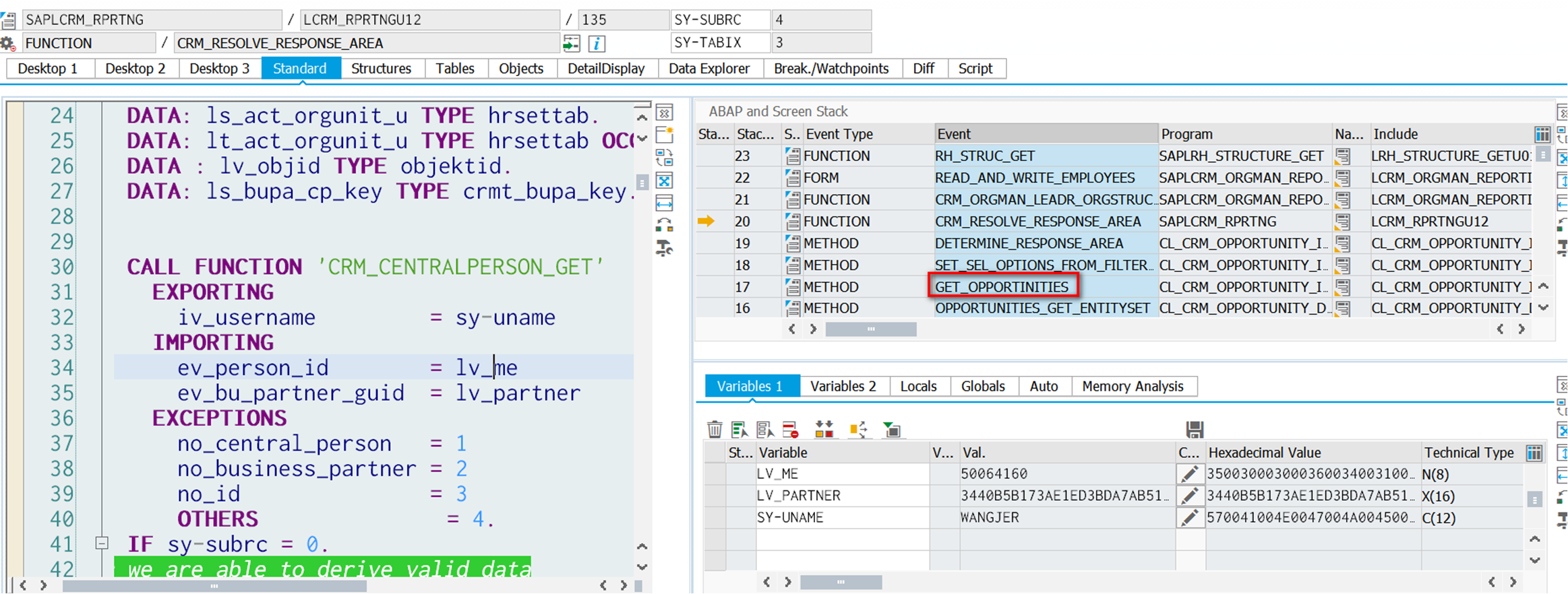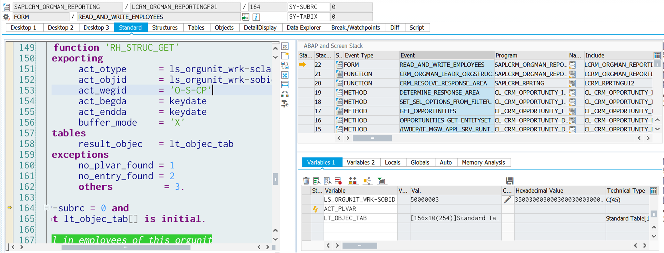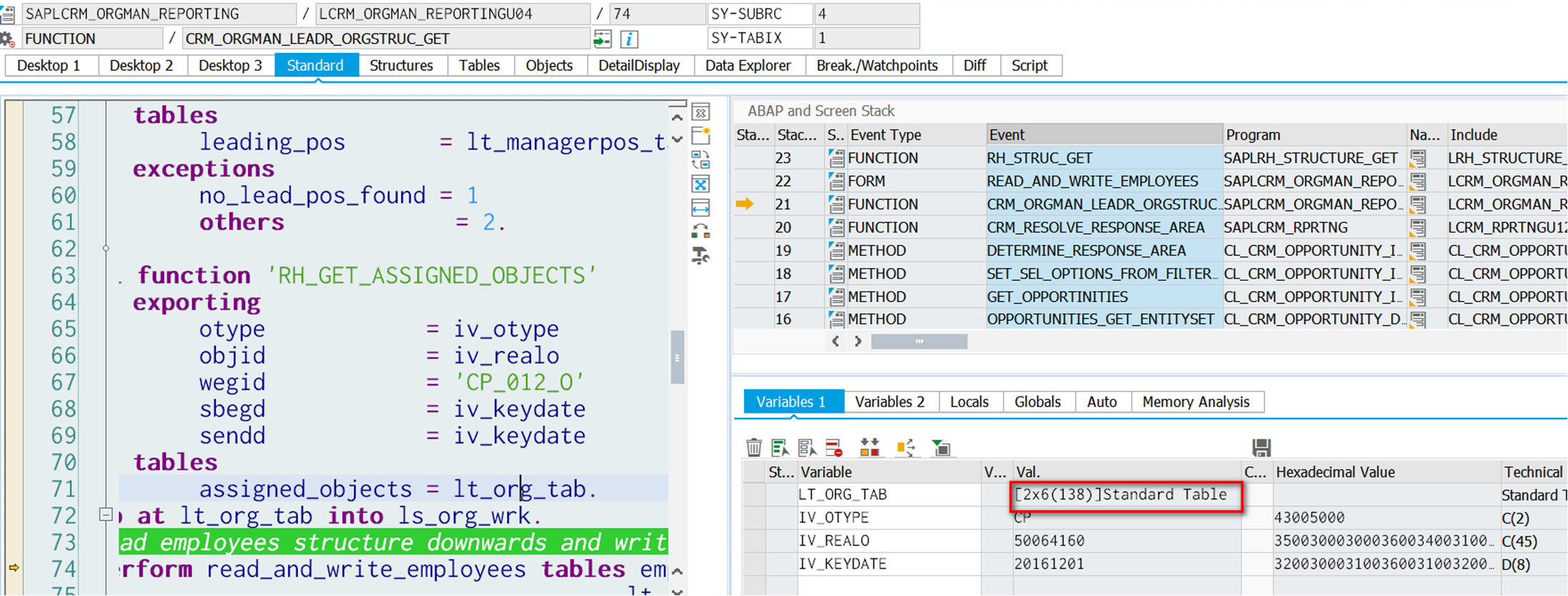 Then find this CP's organization unit via function module in line 63: