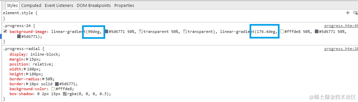 可以在chrome 里观察到degree的变化: