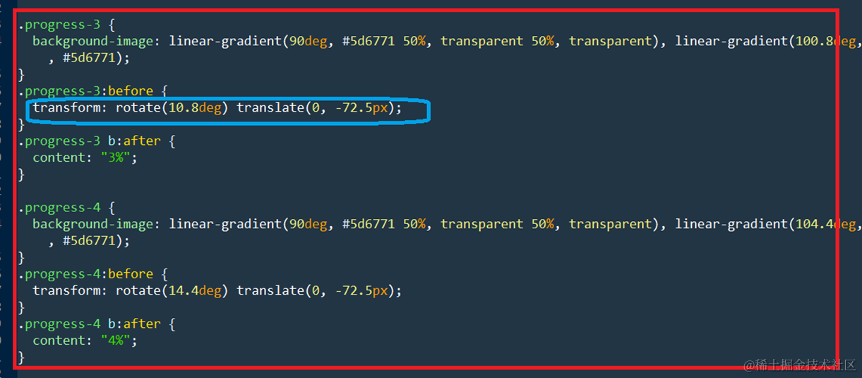 - 在html file里,每个1%的进度都有一组对应的class。每个class通过transform 实现动画效果。
