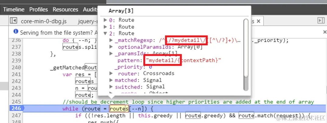 如上图所示,router framework试图根据传入的route request “detail/AccountCollection(‘4039331’)” 来获取一条匹配的route path.