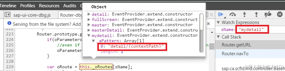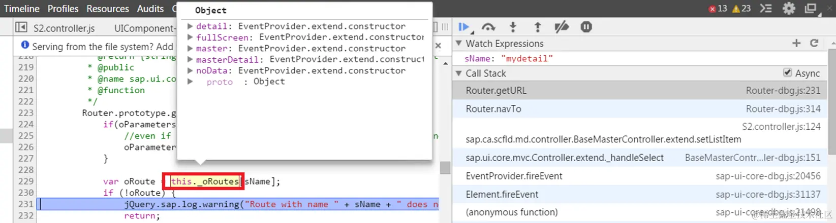 原因是this._oRoutes object里没有名为mydetail的attribute: