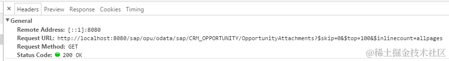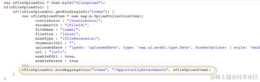 再回过来看刚才还有一个odata call (network里面的第一条),获取了attachment数据之后将数据set到控件的JSON Model里面: