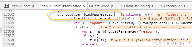 其中第二条odata call就是之前初始化app时候发出的多余请求,说明框架内部对控件初次绑定的时候是需要请求数据的,于是debug了一下bindAggregation的实现: