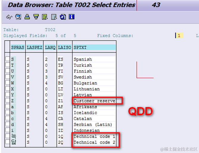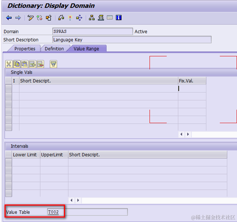 找到这个domain里看到的value table T002。因此你在drop down list里看到的所有entry都来自这个表。