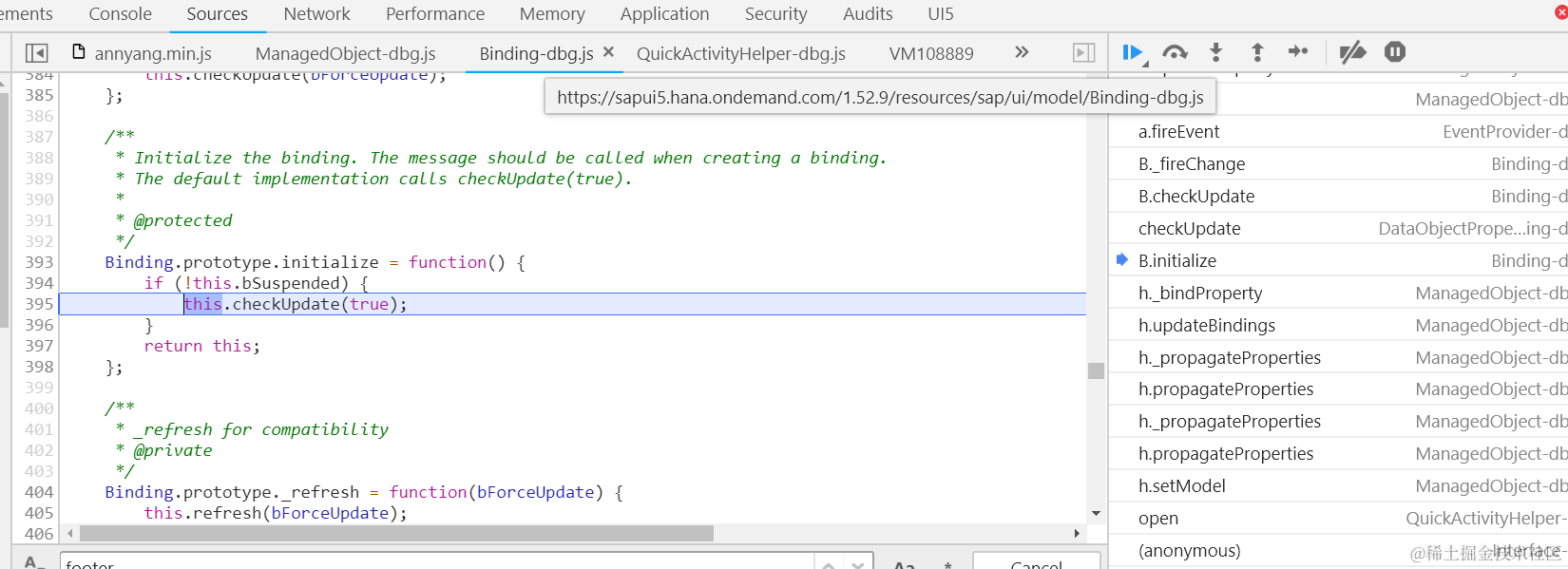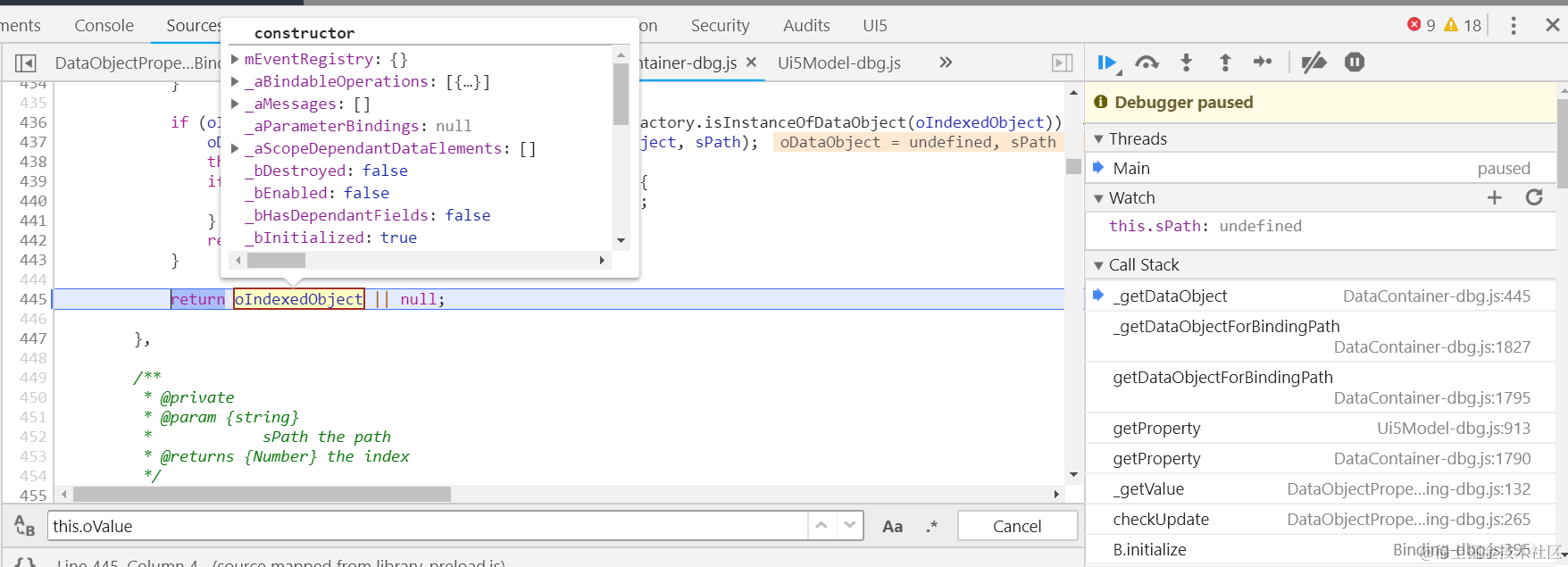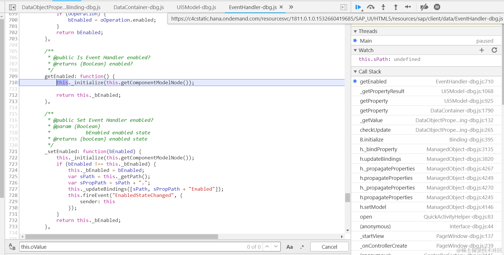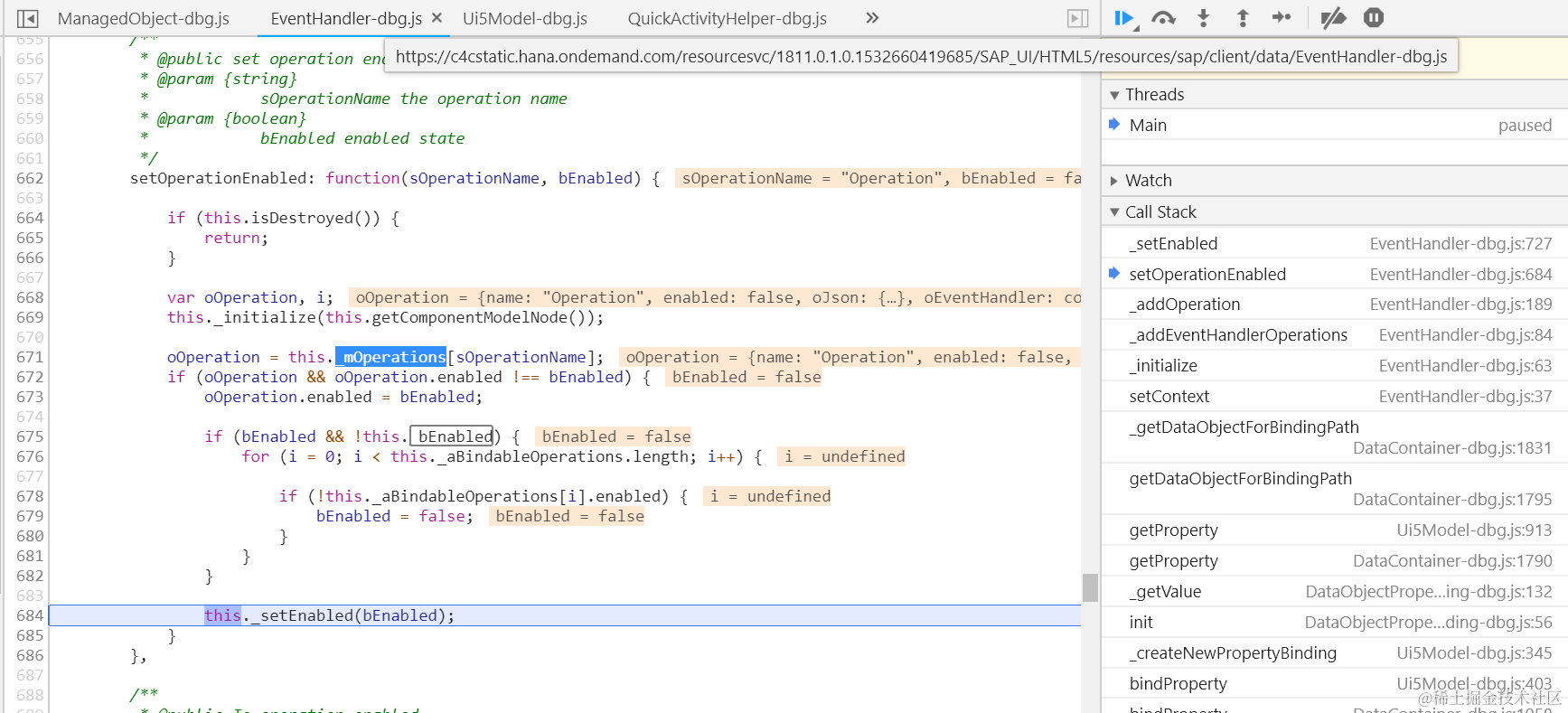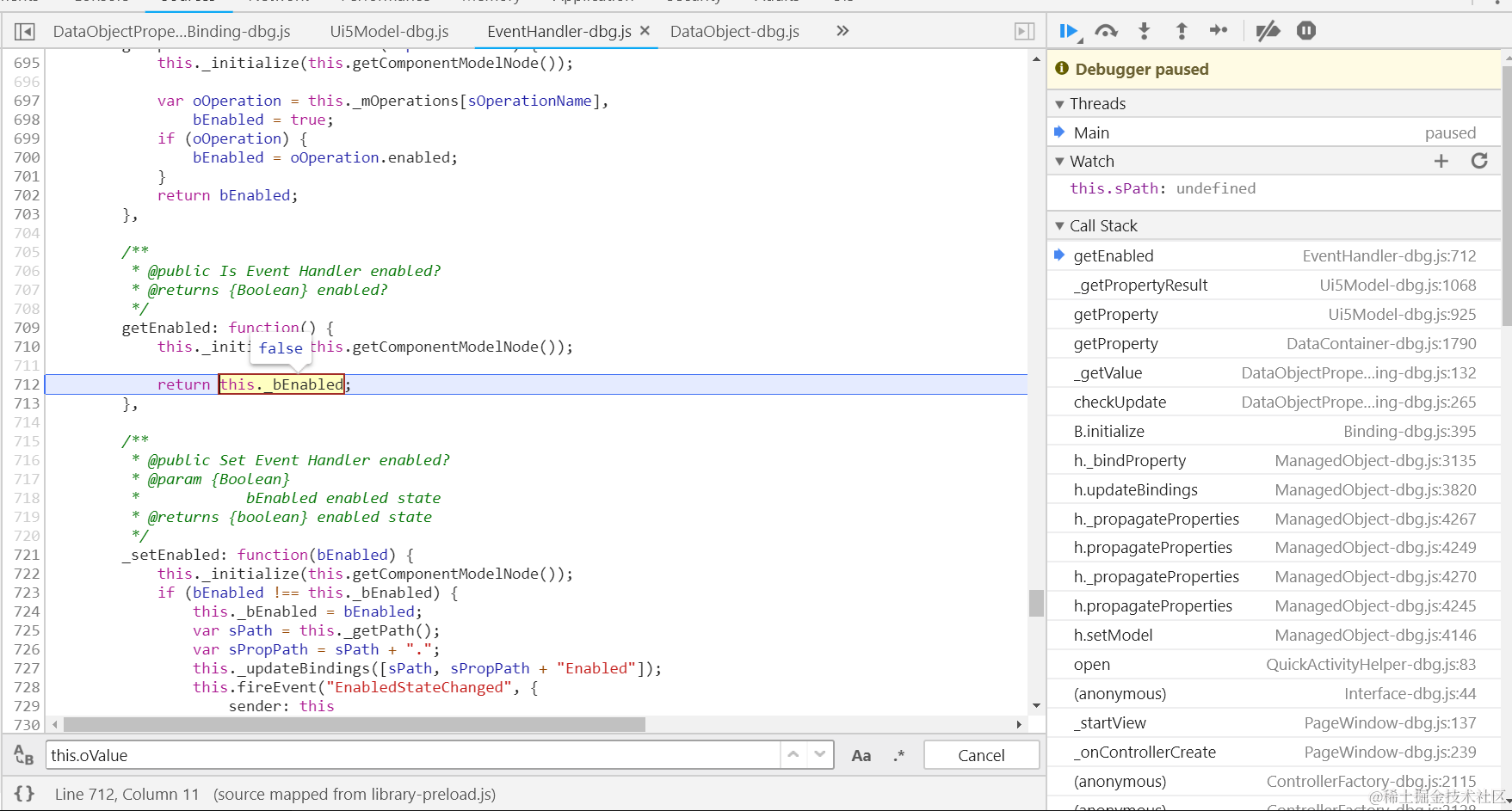 Object.defineProperty(button, “mProperties”, { get: function(){ debugger;}});