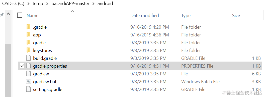 解决方案:目录C:\temp\bacardiAPP-master\android下面的gradle.properties文件,添加如下两行: