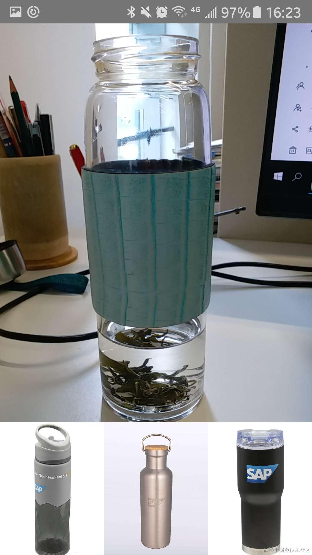 客户启动这个应用后,自动召唤出手机上的摄像头,对身边的物品进行拍照,然后把照片上传到SAP Cloud Platform的Leonardo那里,消费机器学习API之一的Similarity score服务,返回最相似的三个图案。