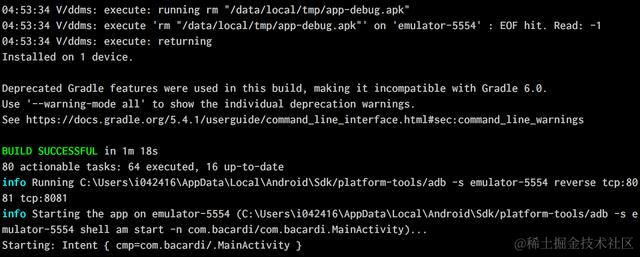 然后重新执行react-native run-android, 就能将应用安装到模拟器上了。
