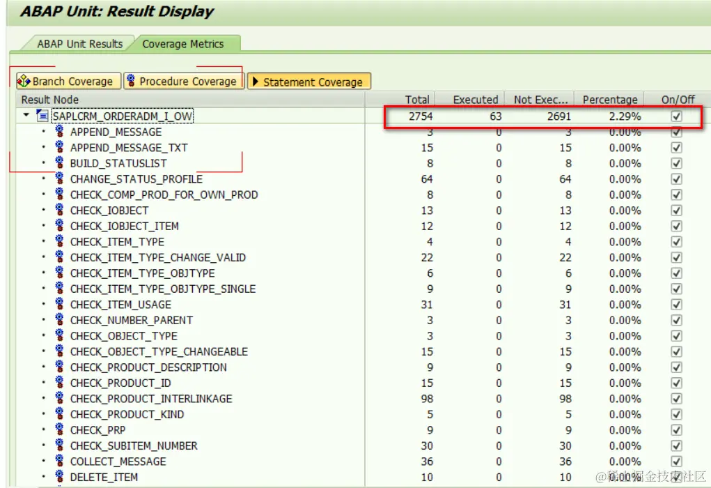 The drawback of this solution: as you can see, the local class is created based on function group level, not function module level, which means all function modules under this function group will be considered when unit test is performed, although there is not actually any test case for them. As a result, the final statement coverage would be extremely low since most of function modules are not tested at all.
