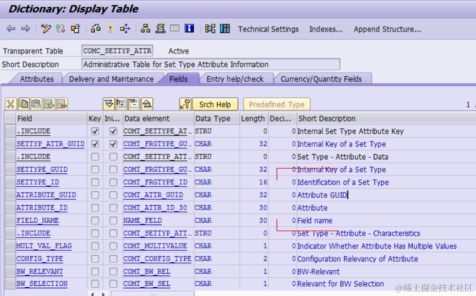 3. settype attribute structure from table COMC_SETTYP_ATTR