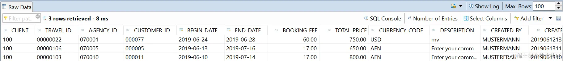 按F9执行这个ABAP类,然后看到三条数据成功插入了: