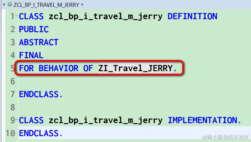 这个实现类里面也不需要开发人员手动编写代码来完成对底层数据库表的增删改查操作——既然能称之为一个编程模型,那么这些通用的功能都通过框架类CL_ABAP_BEHAVIOR_HANDLER统一完成了,应用开发人员只需要定义一个对该类的声明即可。