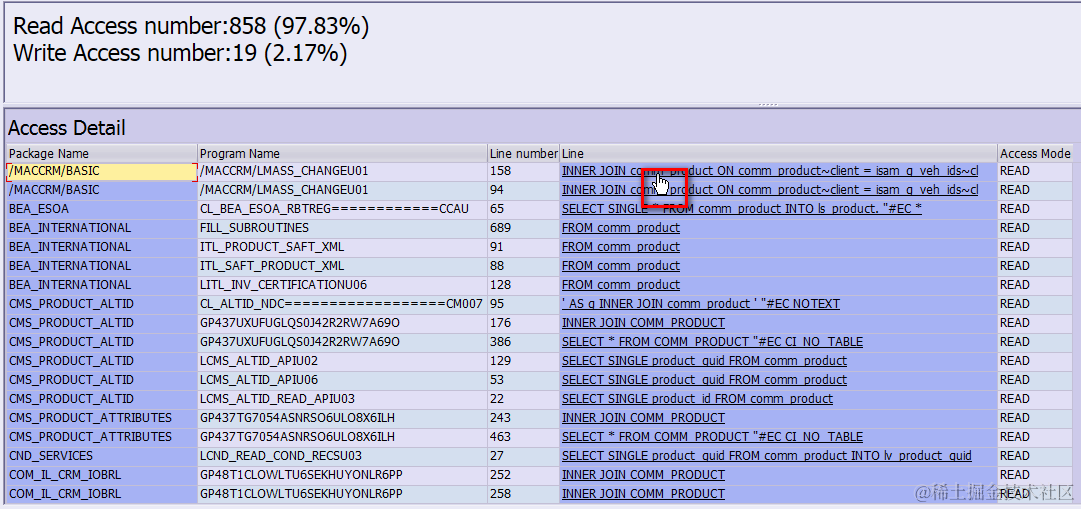 Since this is just a static code scan, there are many invalid result for example those highlighted below - they are neither read nor write on COMM_PRODUCT.
