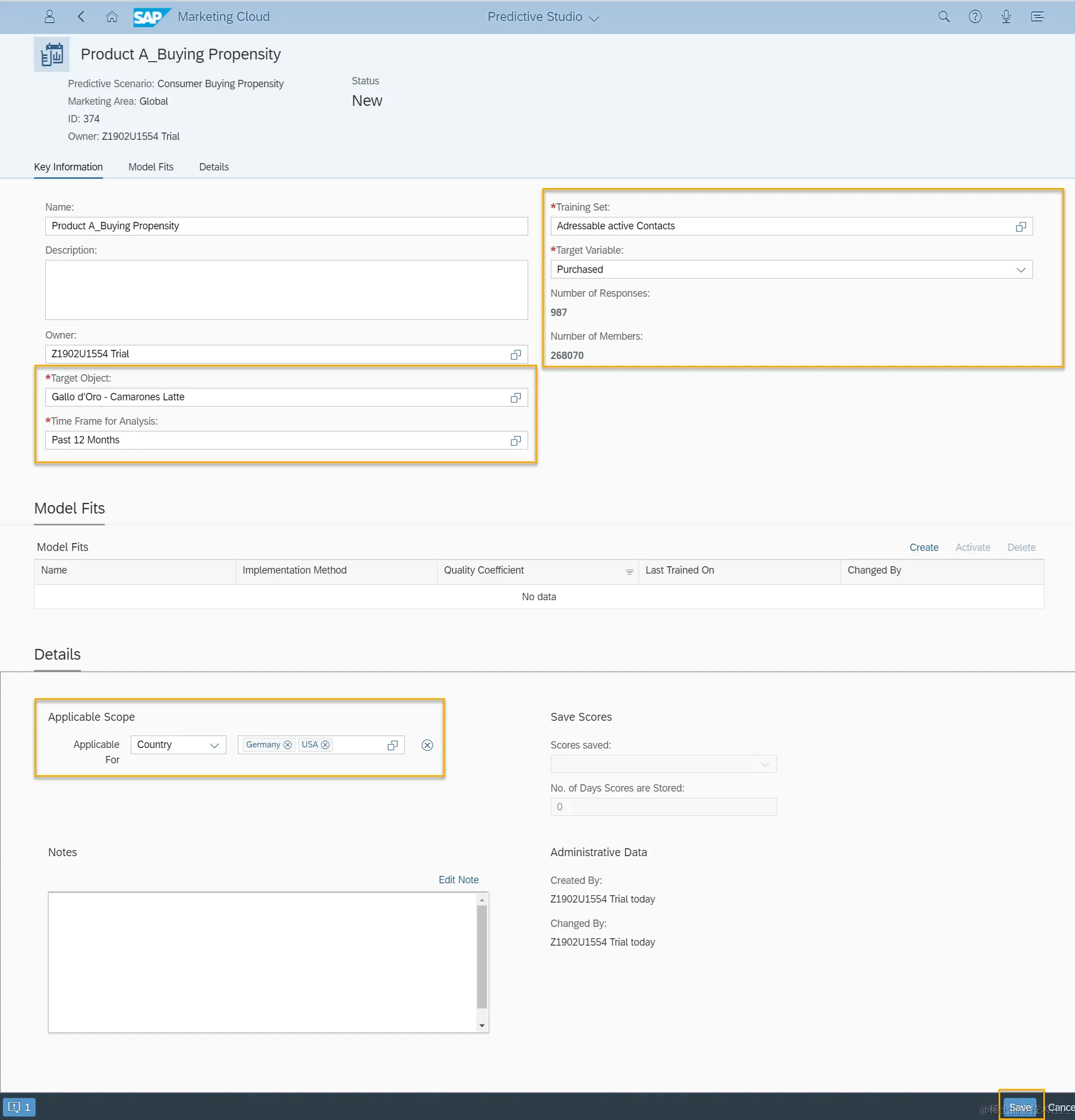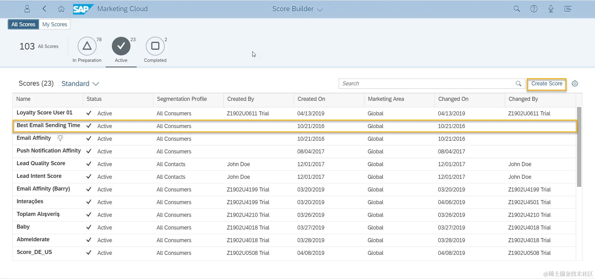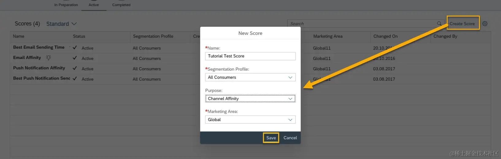 将其他Target Group和Time Frame等信息填写完毕后,保存并激活。至此,Score的创建就完成了。