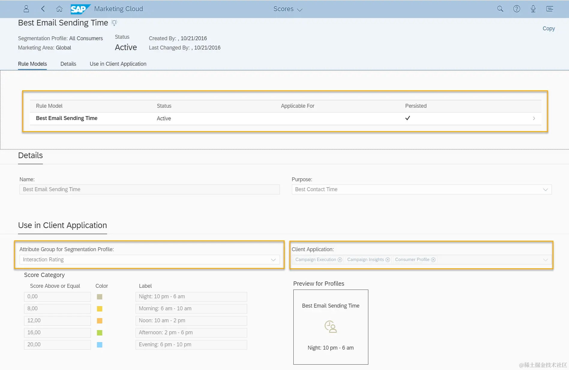 名为Best Email Sending Time的Score Rule,自动统计了整个客户在每个时间段内状态为Active的用户数。