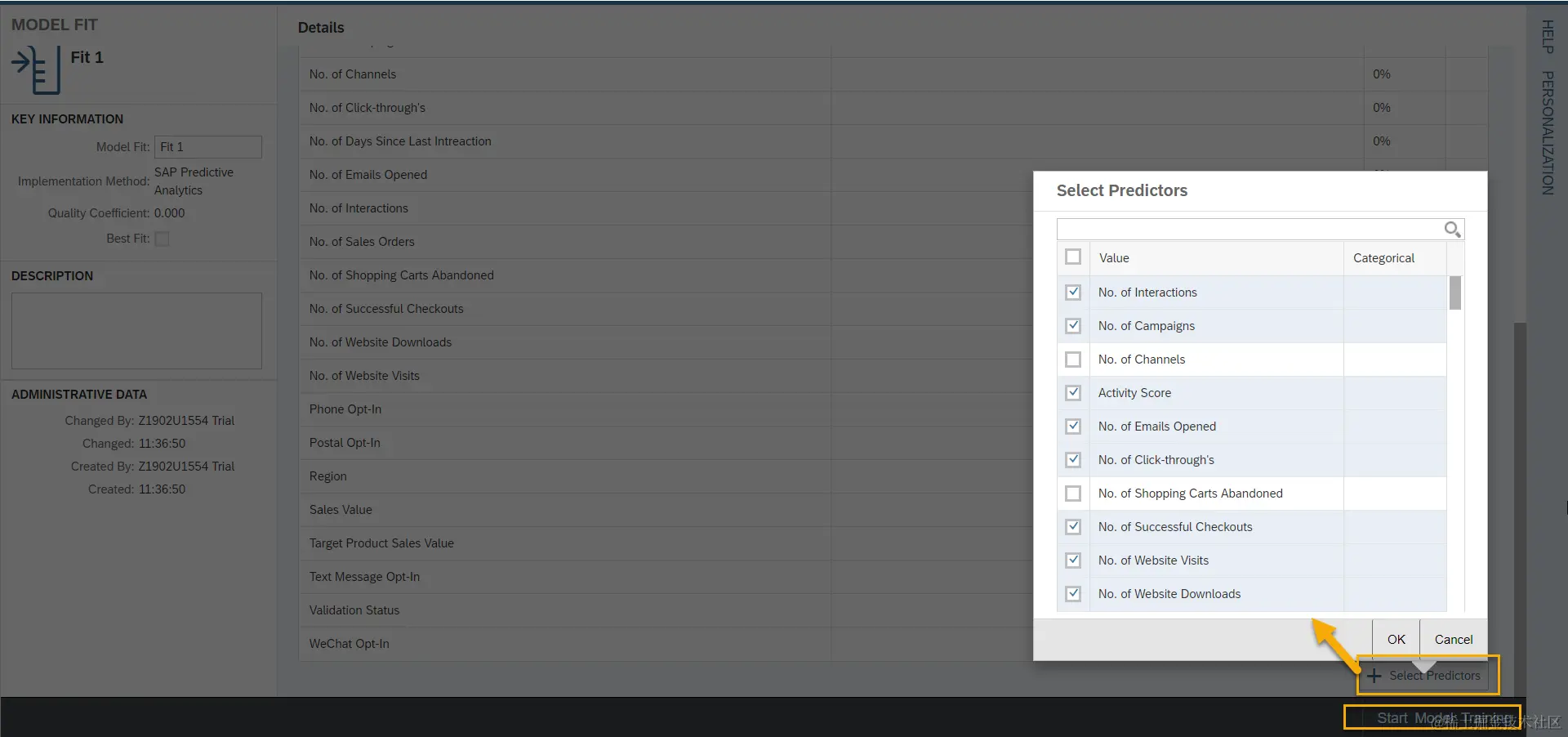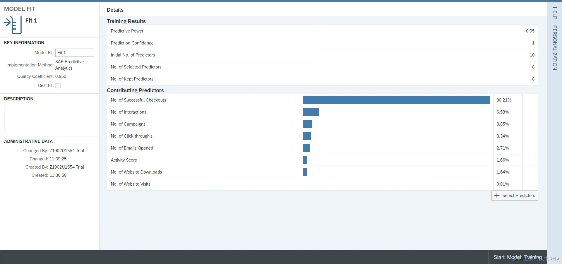 在模型拟合页面,我们选择与模型相关的Predictors,然后点击Start Model Training开始训练。