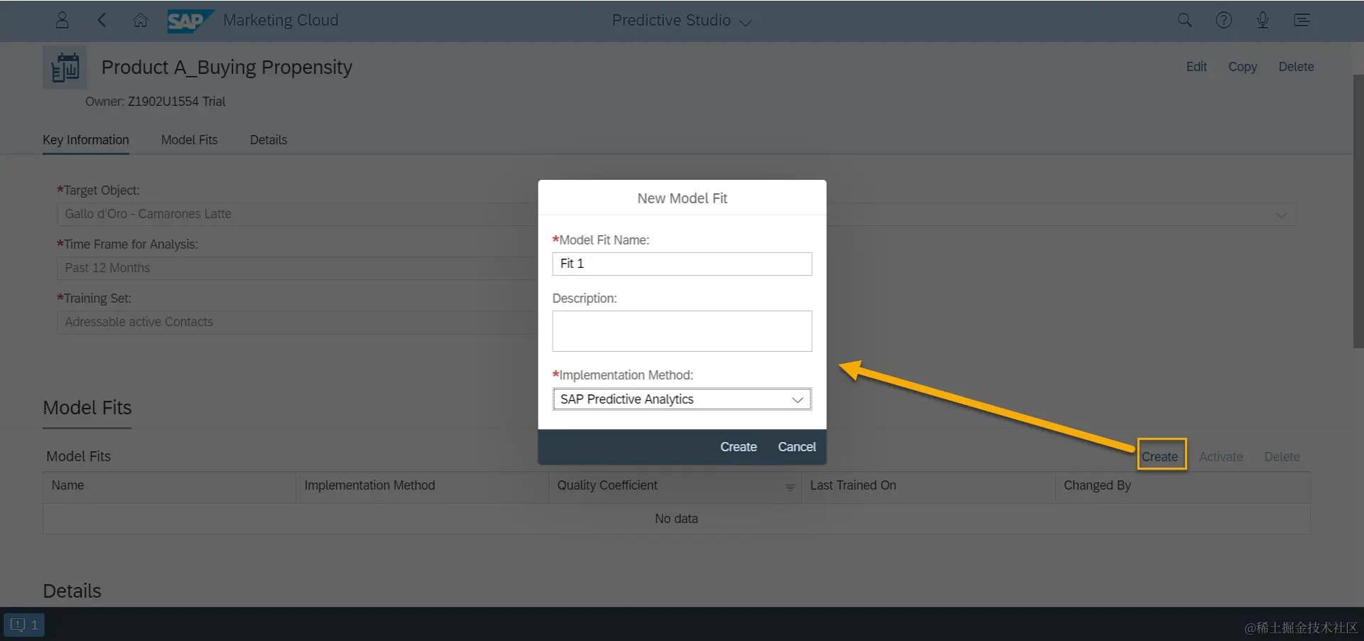 首先进行内部训练模型拟合。在Model Fits部分,我们可以创建模型拟合。