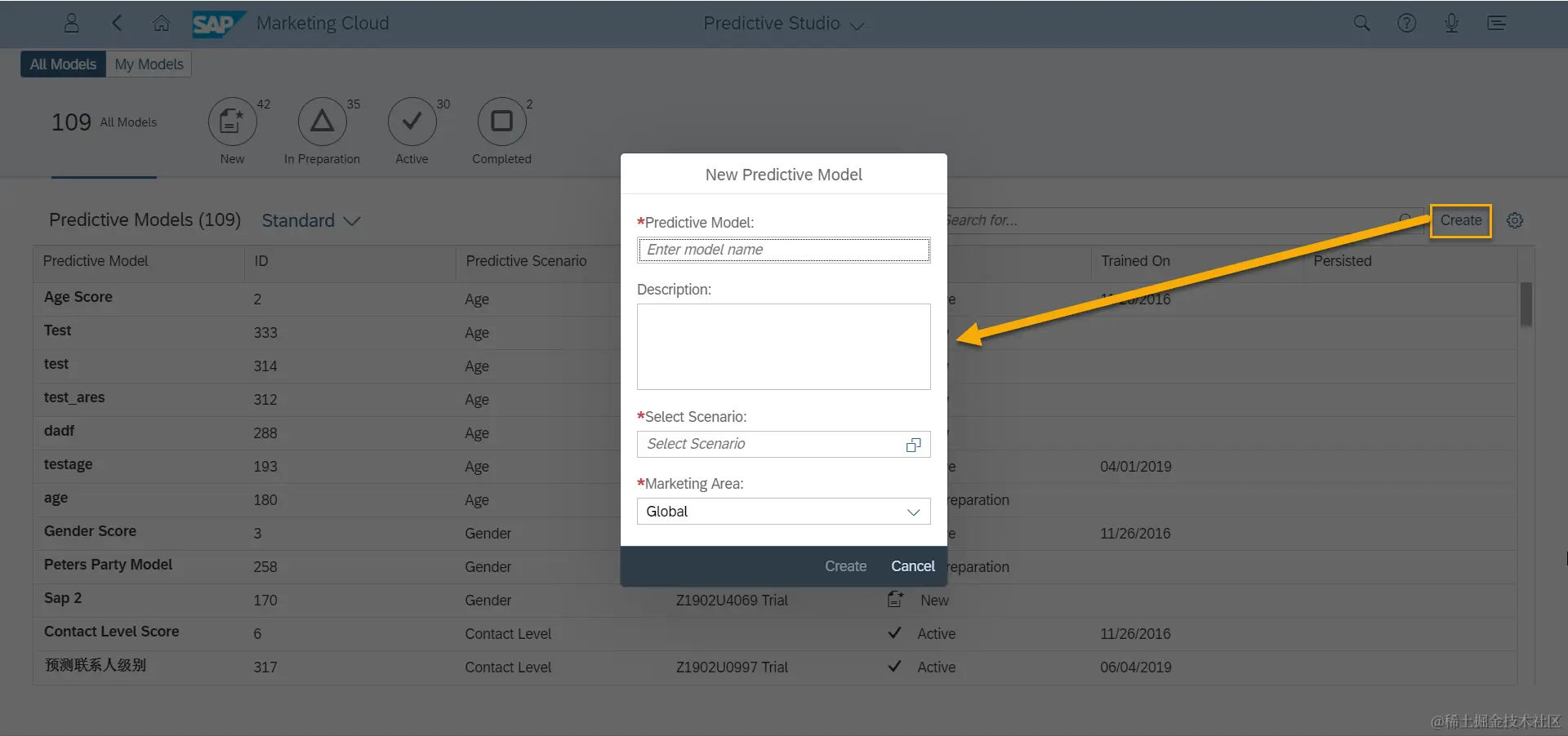 Predictive Studio页面中展示当前已有的预测模型,我们可以选择重新创建一个。