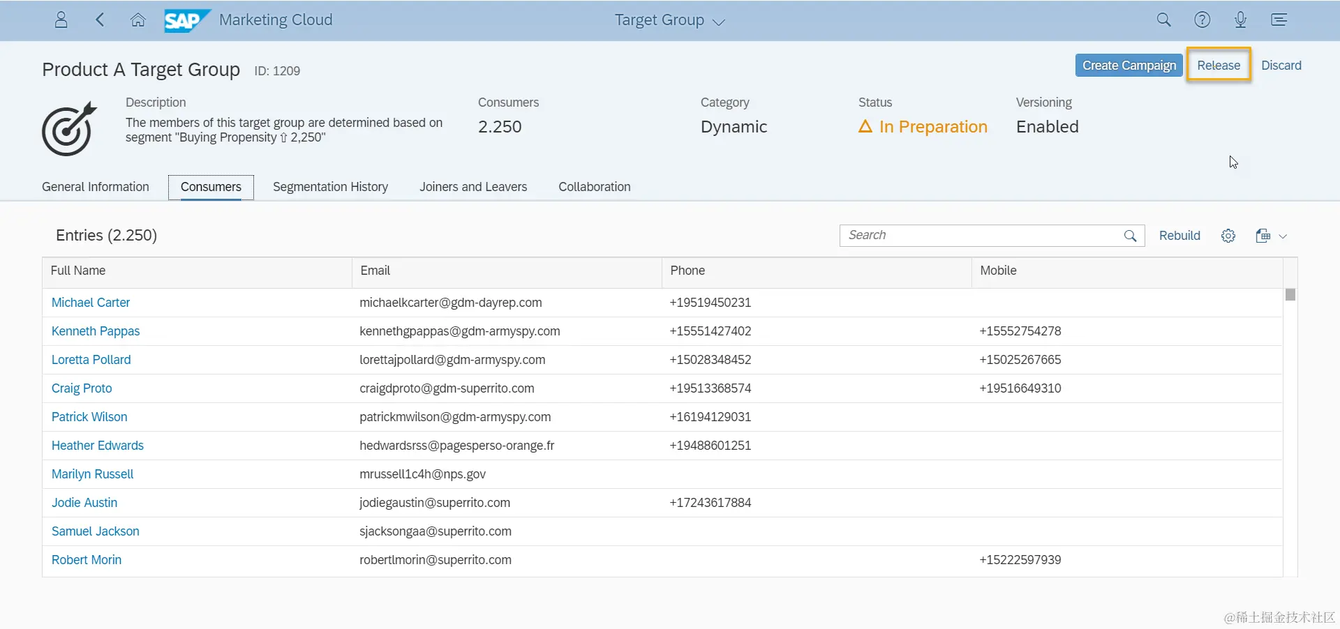 可以看到Target Group的信息,点击Release之后,才可用于Campaign中。