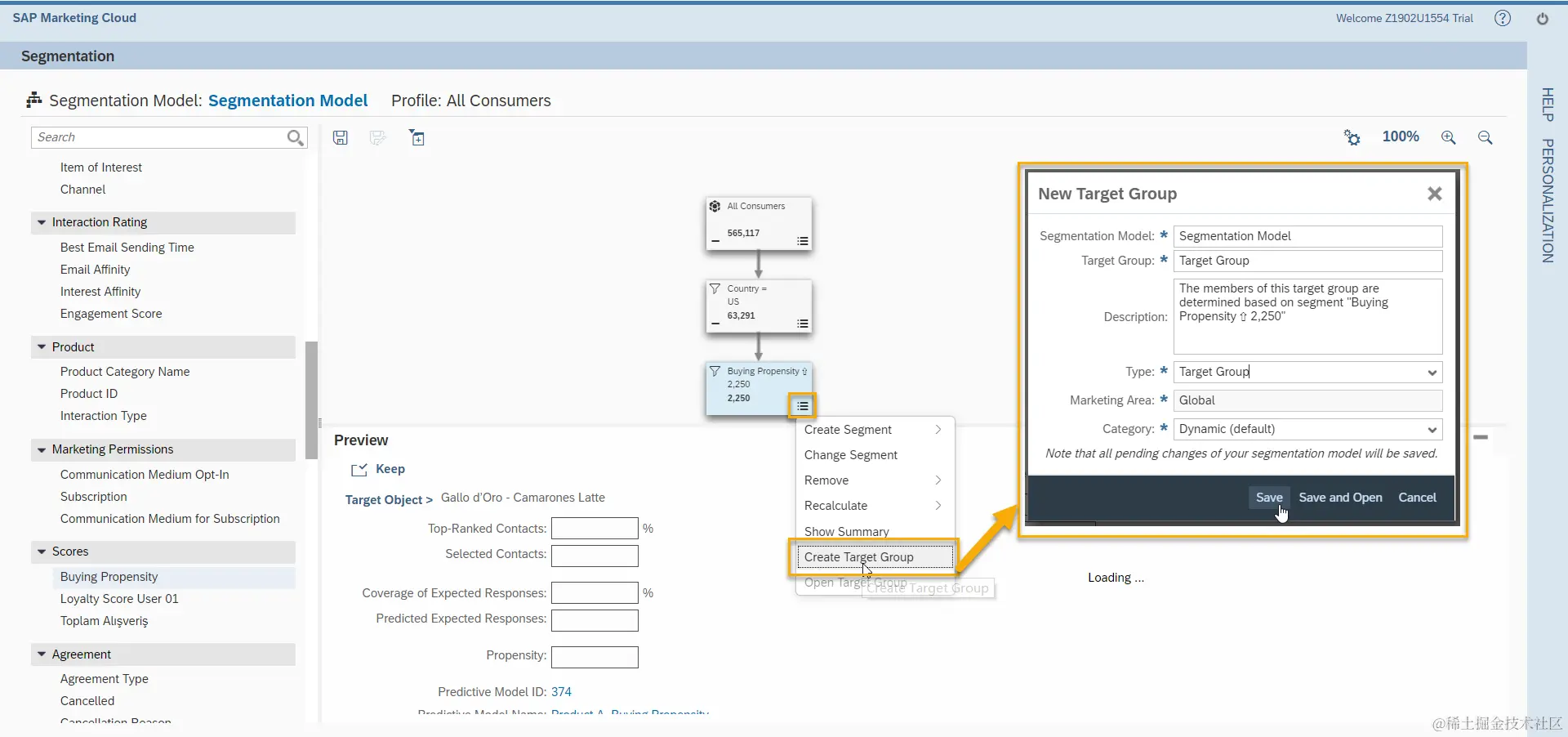 至此即可基于我们细分出的结果创建Target Group. 营销人员Emma可以利用这个Target Group来进行智能高效的精准营销活动。