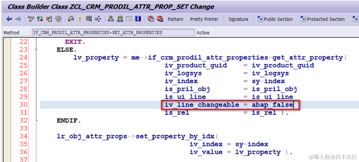 The solution is to remove all property evaluations, instead pass a hard code value abap_false to the following method: