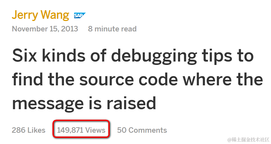 Jerry在SAP社区上写了600多篇博客,阅读量最高的大概要算下面这篇写于2013年的文章:Six kinds of debugging tips to find the source code where the message is raised