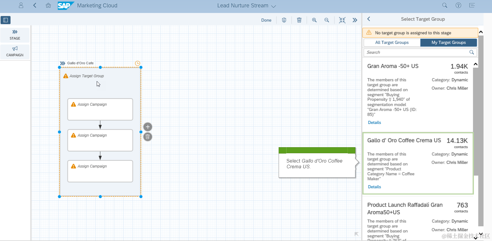 经过对ABM策略相关客户的识别,我们可以开始直接与客户的联系人互动,使用SAP Marketing Cloud中的所有可用功能创建电子邮件、计划市场营销方案和运行营销活动。