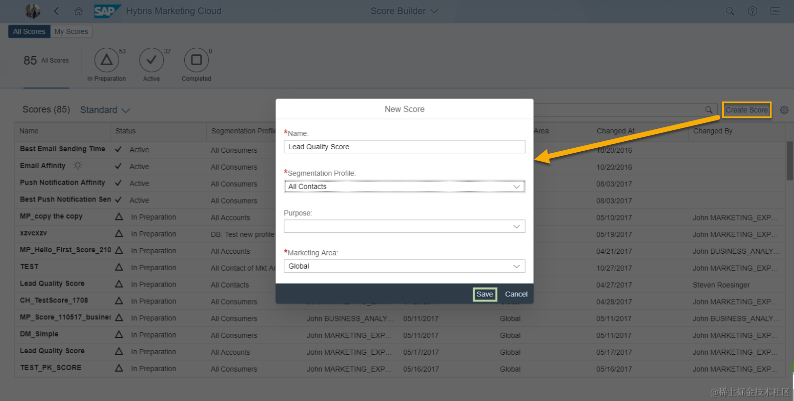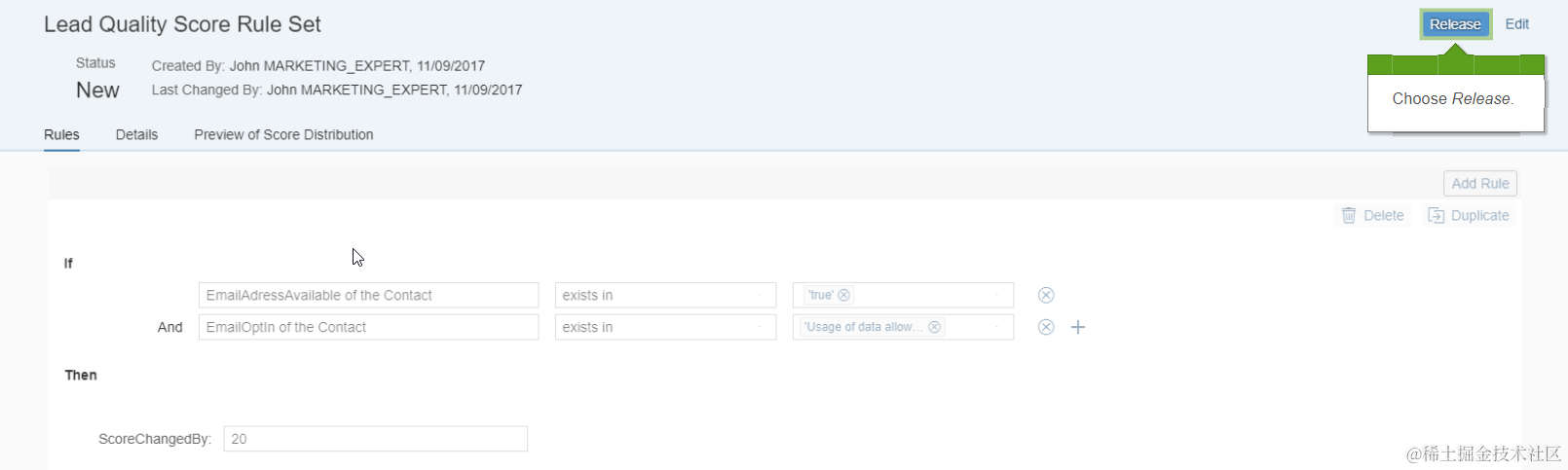 使用Score Builder应用建立新的Score Rule,来衡量线索的就绪情况,进而细分联系人: