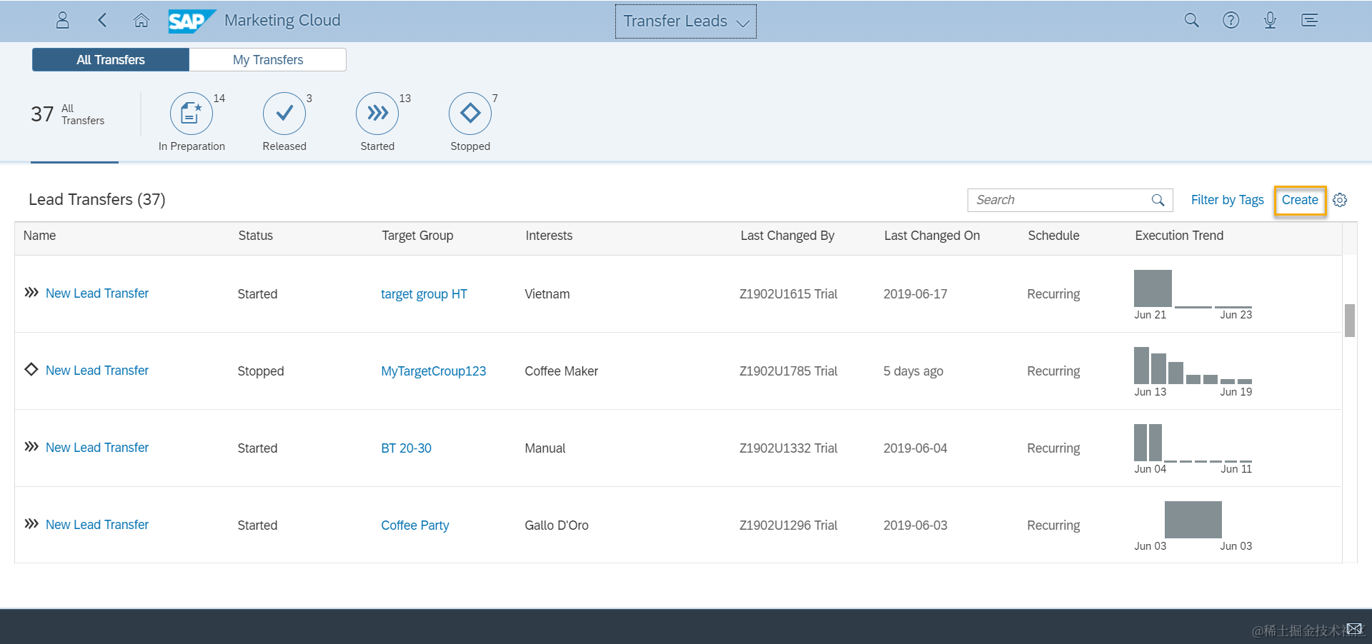 Tags: 用于对相似的线索传输进行分组。可以选择已有的标签,也可以创建新标签。在Transfer Leads概览页面上,我们可以按标签进行过滤。