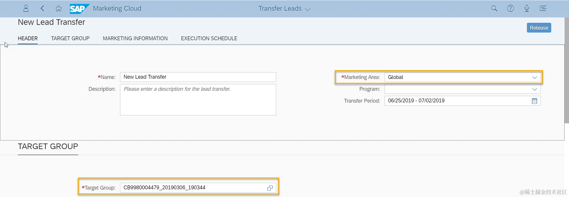 新建一个Transfer Leads, 注意Target Group和Marketing Area要对应一致。