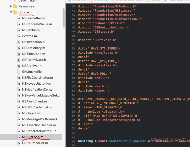 再介绍其他锁之前我们先看一个其他的知识点.我们知道在Foundation框架下,苹果公开的源码只有NSObject,而我们想知道的NSString、NSArray、NSRunLoop、NSThread等等都是没有给源码的.只给了NSObject的部分实现,如果我们确实想看这些源码的话.通过汇编,打断点一步一步看,这样也是可以看到的,但是这样就有点麻烦,要会汇编语言,而且还要一点一点的调试才能知道.所以这里给大家介绍另一个方案,叫做:GNUstep.