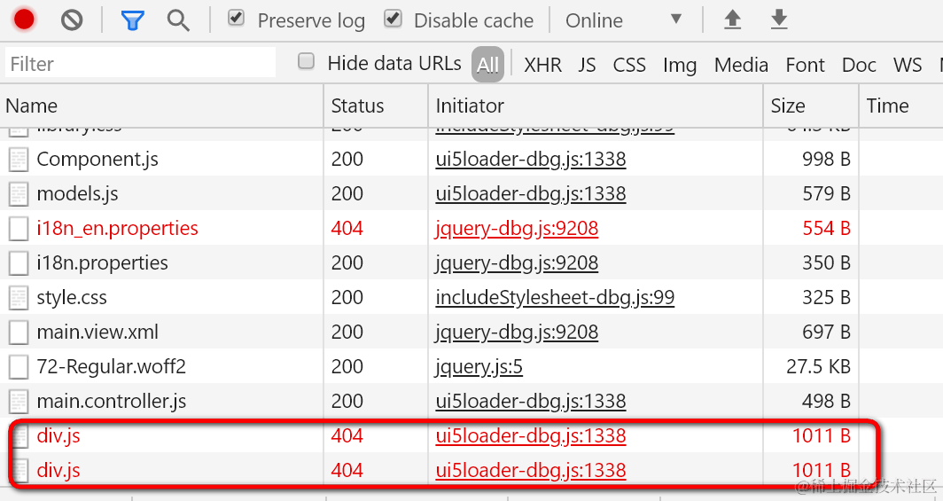 404错误,UI5框架加载不了div.js这个脚本文件。