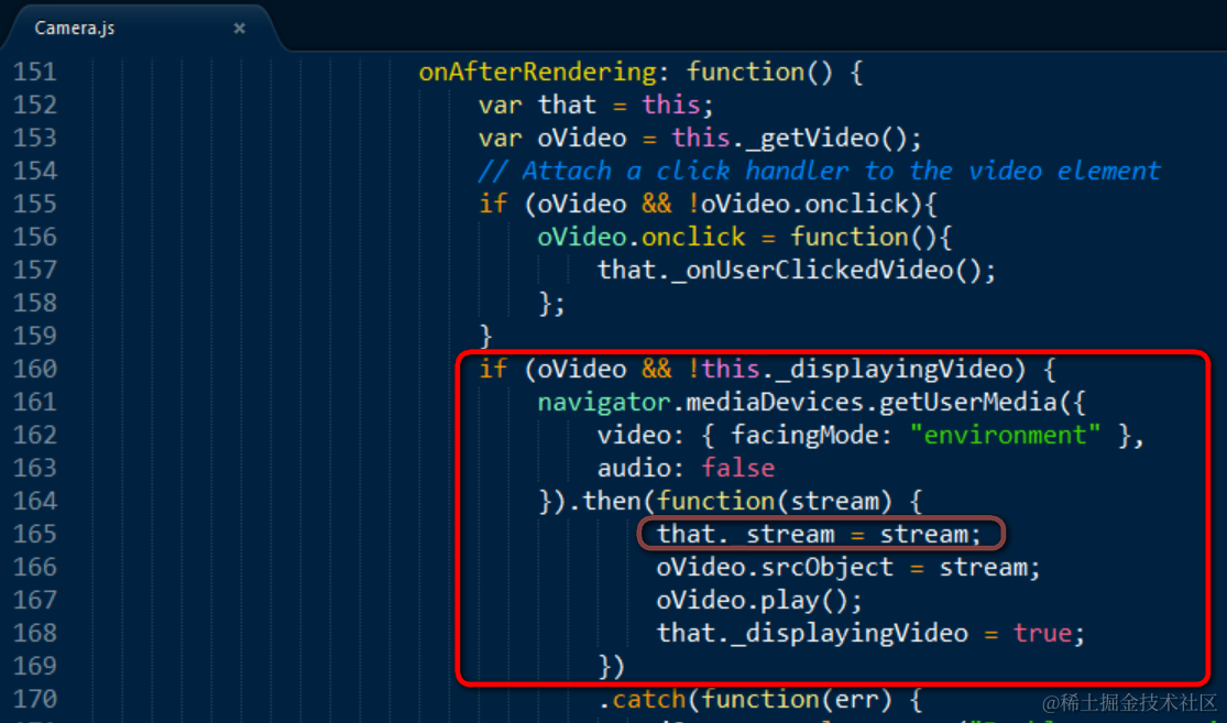 实现了将WebRTC API获得的MediaStream对象实例绑定到控件封装的video元素上的步骤。
