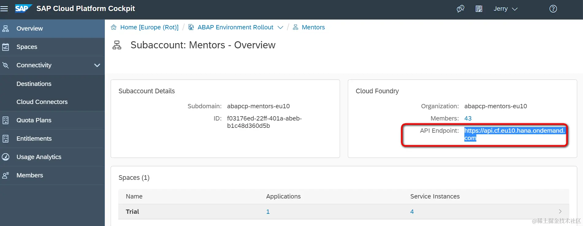 I have a ABAP system service in CloudFoundry environment with API end point: